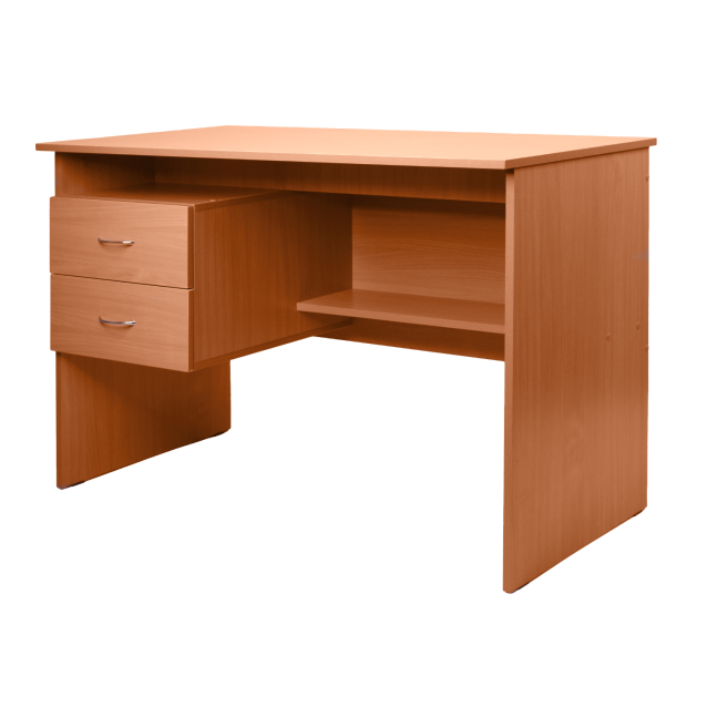 Описание Стол письменный изготовлен из ЛДСП толщиной 16 мм и оснащен подвесной тумбой с двумя ящиками.