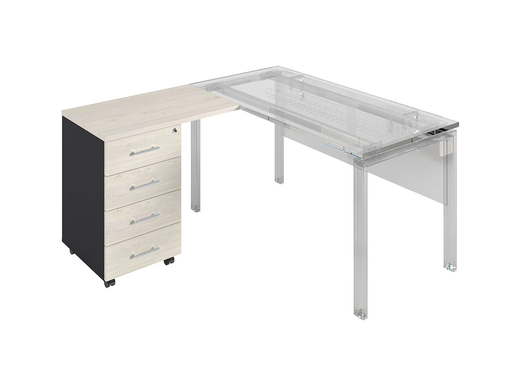 - тумба снабжена центральным замком и оснащена пластмассовым лотком для канцелярских принадлежностей в верхнем ящике