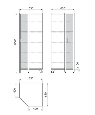 Угловой шкаф серии ДМ-3 на колесных и регулируемых опорах — удобное решение для медицинских и административных помещений. Конструкция из алюминиевого профиля и ЛДСП обеспечивает прочность, а 5 вместительных полок — оптимальную организацию хранения.