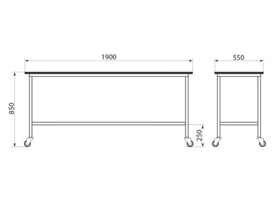 - Столешница: листогнутая нержавеющая сталь AISI 304 толщиной 0,8–1,2 мм, нагрузка до 60 кг