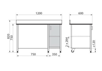 | Опоры | спереди - ножки с регулируемой опорой, диапазон регулировки +12-1мм; сзади - колесные опоры Ø100мм. |