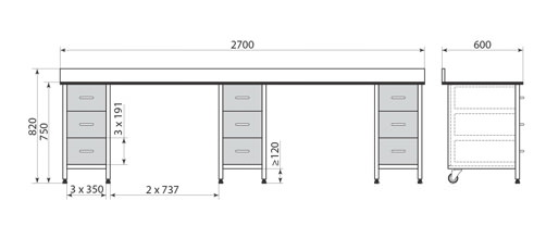 | Опоры | спереди - ножки с регулируемой опорой, диапазон регулировки +12-1мм; сзади - колесные опоры Ø100мм. |
