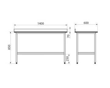 | Столешница | Выполнена из листогнутой нержавеющей стали марки AISI 304 (08Х18Н10), толщиной 0,8 - 1,2 мм, номинальная нагрузка на столешницу до 60 кг. Сзади установлен бортик высотой 70мм. |