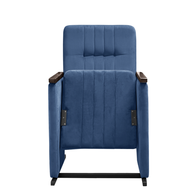 Это комфортное кресло идеально подойдет для актовых и конференц-залов, а также театров. Мягкие элементы выполнены из эластичного пенополиуретана повышенной плотности. На подлокотниках имеются деревянные накладки. Сиденье откидное.
