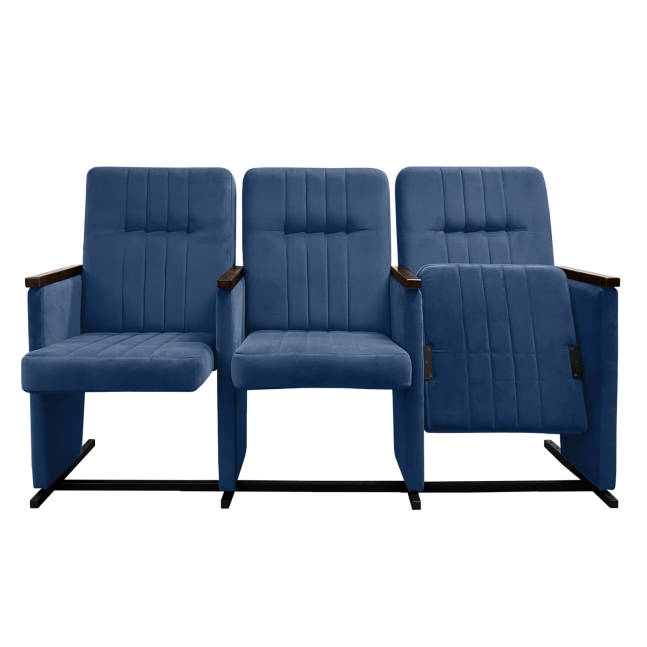Это сиденье идеально подходит для посетителей конференций, концертов и киносеансов. На подлокотники нанесены деревянные накладки. Металлическая основа кресла имеет порошковое покрытие. Сиденье является откидным.
