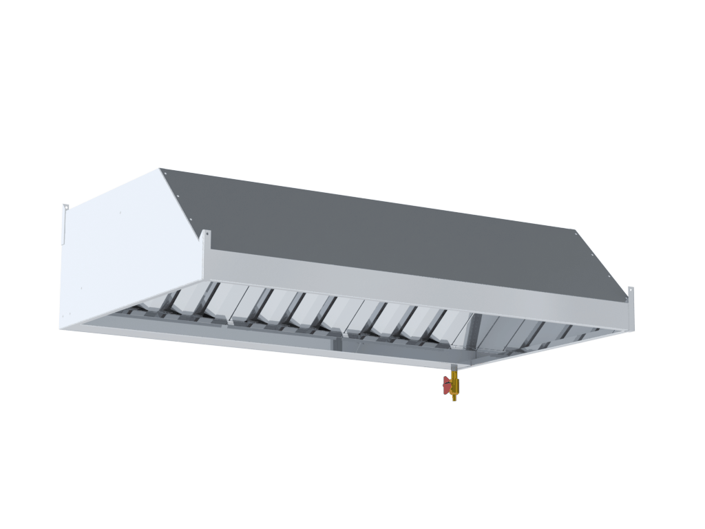 Ванна оснащена запорным шаровым кранодля слива конденсатаВ качестве дополнительной опции предлагается установка освещения, патрубков для инсталляции в вентиляционную систему, а также комплект крепежных изделий, включающий в себя анкерные болты и цепи для размещеникрупногабаритных зонтов.