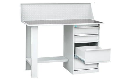 Верстак слесарный однотумбовый (тумба с 4 ящиками), с экраном