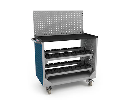 Боковые стенки представляют собой двойные перфорированные экраны. С внешней стороны тележки на них можно установить аксессуары к экранам — лотки, держатели инструмента и т.д. Между экранами установлены салазки для держателей инструмента. Сами держатели инструмента приобретаются дополнительно.