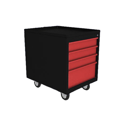 - В корпусе установлено 4 выдвижных ящика (высотой 300+200+100+100 мм) на телескопических направляющих с грузоподъемностью до 40 кг на один ящик. Центральный замок с двумя ключами.