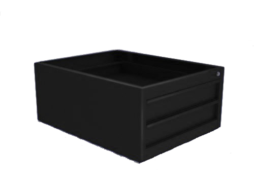 - В корпусе установлен выдвижной ящик (высотой 100+100 мм) на телескопических направляющих с грузоподъемностью до 40 кг на ящик.