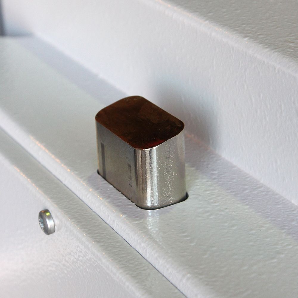 Сейф E 536 ES немецкого качества выполнен в цветовой гамме серый с белым. Поверхность защищена от механических повреждений и коррозии плотным порошковым покрытием. Высота модели позволяет хранить в камере документы формата А-4, деньги, оружие и другие ценные вещи. Внутри расположены съемные полочки.