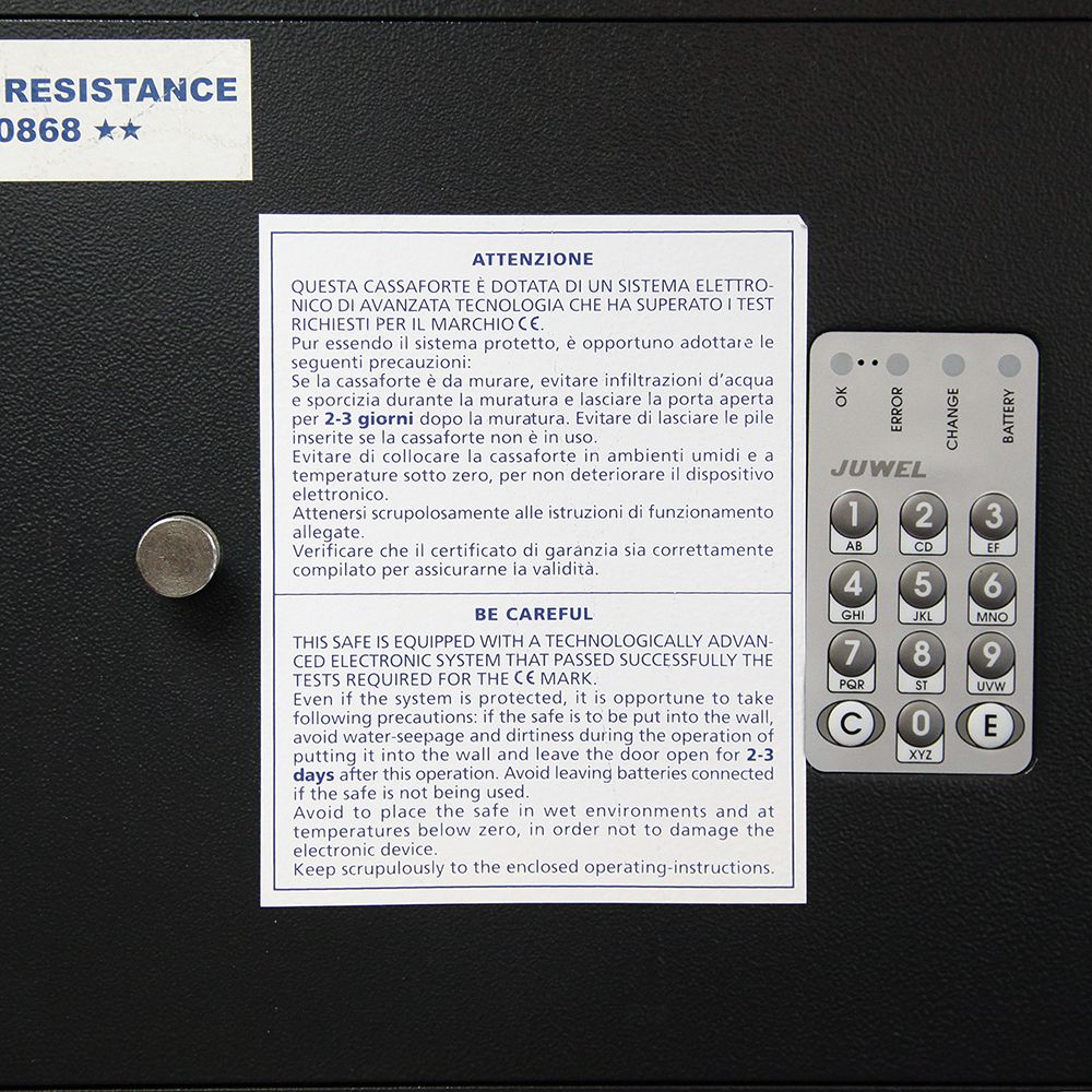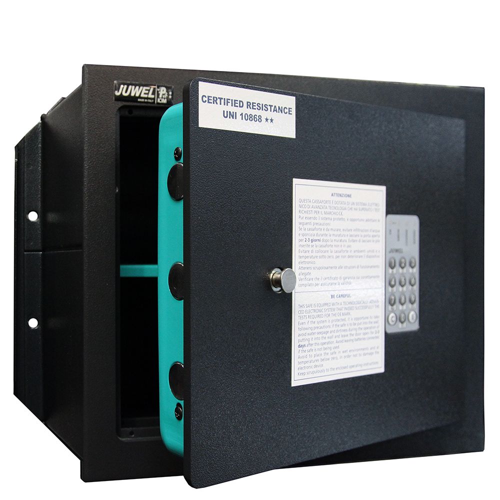 Итальянская компания Juwel производит высококачественные огнеупорные сейфы, которые прошли сертификацию в России. Электронный кодовый замок оснащен электромотором привода запирающих ригелей. Передняя панель сейфа приварена сплошным швом, который гарантирует прочность и надежность. Сейф отличается современным дизайном и высокими техническими характеристиками.