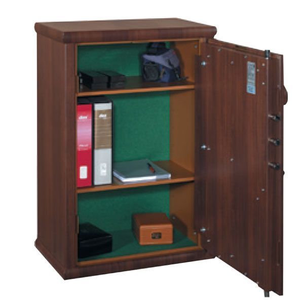 Сейф относится к классу элитных сейфов для хранения документов и ценных предметов в офисе или доме. Трехсторонний ригельный механизм закрывания, со стержнями из легированной стали диаметром 22 мм под электронным кодовым управлением. Спрятанные изнутри дверные петли, толстый металл корпуса - соответствует классу взломостойкости S2. Внутренняя поверхность обшита зеленым сукном и оборудована 2 полками для предметов. Внешняя поверхность сейфа окрашена под благородные сорта дерева. Доступны несколько вариантов (дуб, вишня, грецкий орех, клен). Предусматривает два варианта монтажа – крепление к полу или стене.