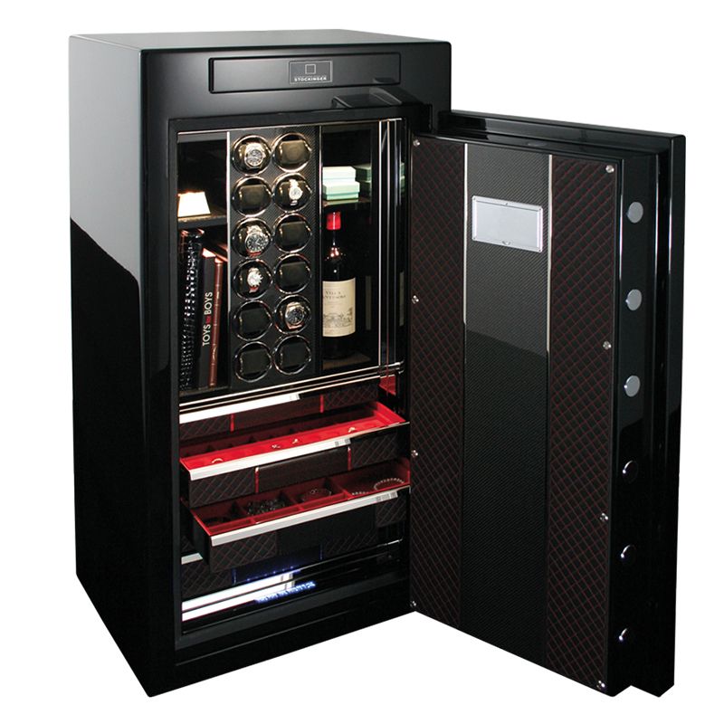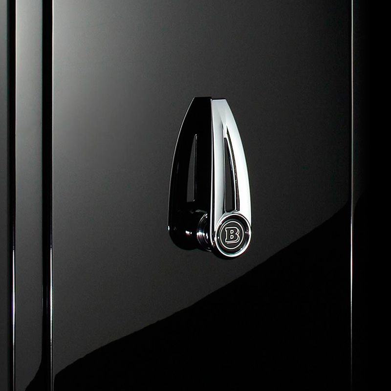 Данный сейф порадует настоящих ценителей-коллекционеров наручных часов и драгоценностей. Компании Brabus и Stockinger объединили свои усилия в создании данного шедевра, который доказывает своим появлением, что хранить ценные бумаги, ювелирные украшения и часы можно со вкусом. Люкс-сейф Brabus SV12 как нельзя лучше впишется в ваш интерьер благодаря своему элегантному дизайну, при этом гарантируя наилучшую степень сохранности ценных вещей. Будучи выдержанным в строгом, ультрасовременном стиле, этот сейф воплощает собой более чем гармоничное сочетание функциональности и превосходного дизайна. Корпус и дверь сейфа размером 127х67х55, покрытые высококачественным черным лаком, имеют строгую прямоугольную форму, а ручка, расположенная прямо по центру дверцы и украшенная эмблемой Brabus, полностью сделана из латуни. На обратной стороне двери имеется табличка с индивидуальной гравировкой. Внутренние поверхности сейфа впечатляют своей роскошью – отделкой красной алькантарой, кожей, карбоном и древесиной. В декорировании сейфа присутствует много хромированных деталей, что придает изделию некую «хайтечность», наряду с респектабельной строгостью классики. Как в часовом сейфе люкс класса у Brabus SV12 продуманы отделы для хранения особых ценностей – дорогих сигар и элитных напитков. Также, сейф этой модели отличается вместительностью, полезный объем сейфа - более 180 литров. Brabus SV12 позаимствовал свое название от самого мощного серийного двигателя, и именно поэтому он оборудован 12-тью виндерами для автоподзавода и демонстрации часов. Сейф Brabus SV12 отвечает требованиям европейского стандарта EN 1143/1, сертифицирован на взломостойкость - класс VDS III. Также, дополнительную защиту обеспечивает запатентованная электронная система сигнализации. А для тех, кто захочет наслаждаться хранящимися в сейфе вещами в темное время суток, продумана специальная подсветка. Чувство прекрасного, вкус к роскоши, усовершенствованные технические возможности, любовь к мельчайшим деталям и преданность своему делу- эти качества объединяют компании «Brabus» и «Stockinger», именно они позволили им создать сейф BrabusSV12. Все прекрасное не может быть массовым, а потому, выпуск сейфа «Brabus» лимитирован 25-тью экземплярами.