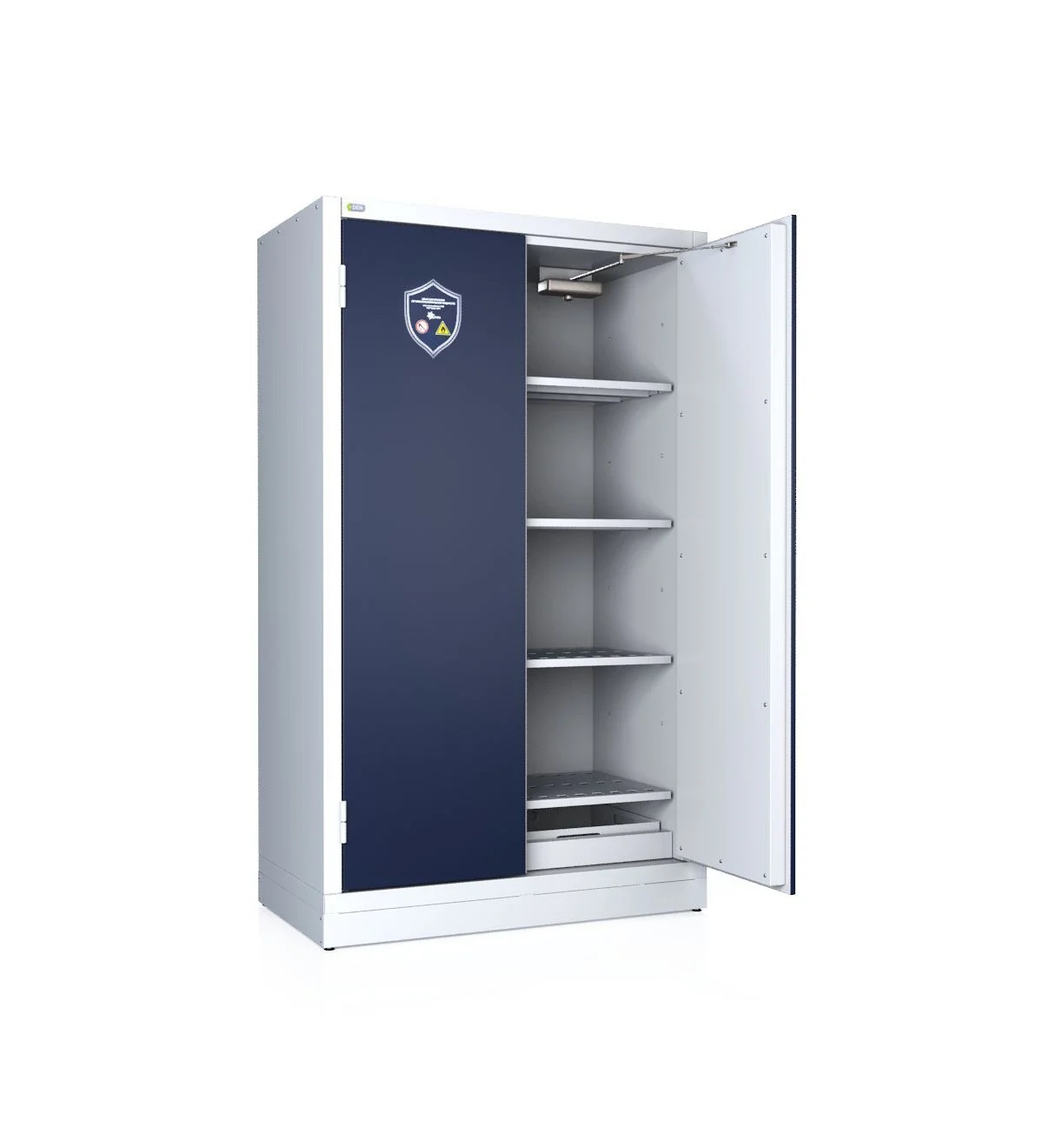 Шкаф для хранения легковоспламеняющихся жидкостей (ЛВЖ) имеет цельную сварную конструкцию. Благодаря современным технологиям и передовому заводскому оборудованию, такие шкафы изготавливаются с двойными стенками. Внутри предусмотрена новая огнеупорная изоляция, выполненная из экологически чистого материала с высокой устойчивостью к огню. Внутренний корпус, покрытый панелями из устойчивого к царапинам и коррозии материала, обеспечивает надежную защиту содержимого.