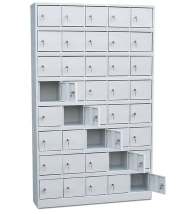 - 40 металлических отделений, каждое — с отдельным замком.