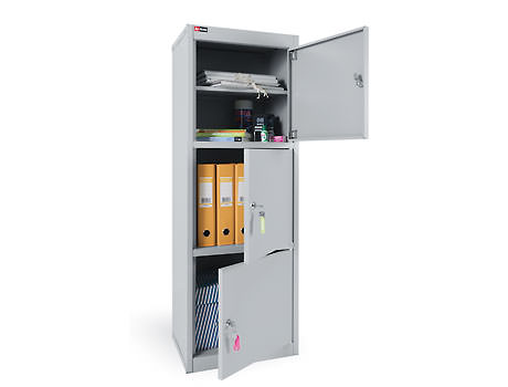 Модель предназначен для хранения документов. Шкаф имеет 3 отдельные ячейки, размер которых подходит для вертикального хранения документов формата А4 в папках различного типа.