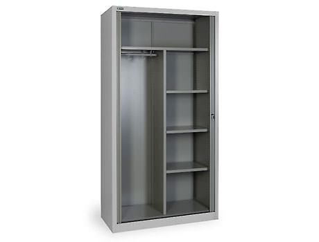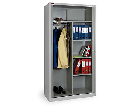 В шкафу предусмотрено специальное отделение для удобного хранения одежды, что делает его функциональным для офисных сотрудников.