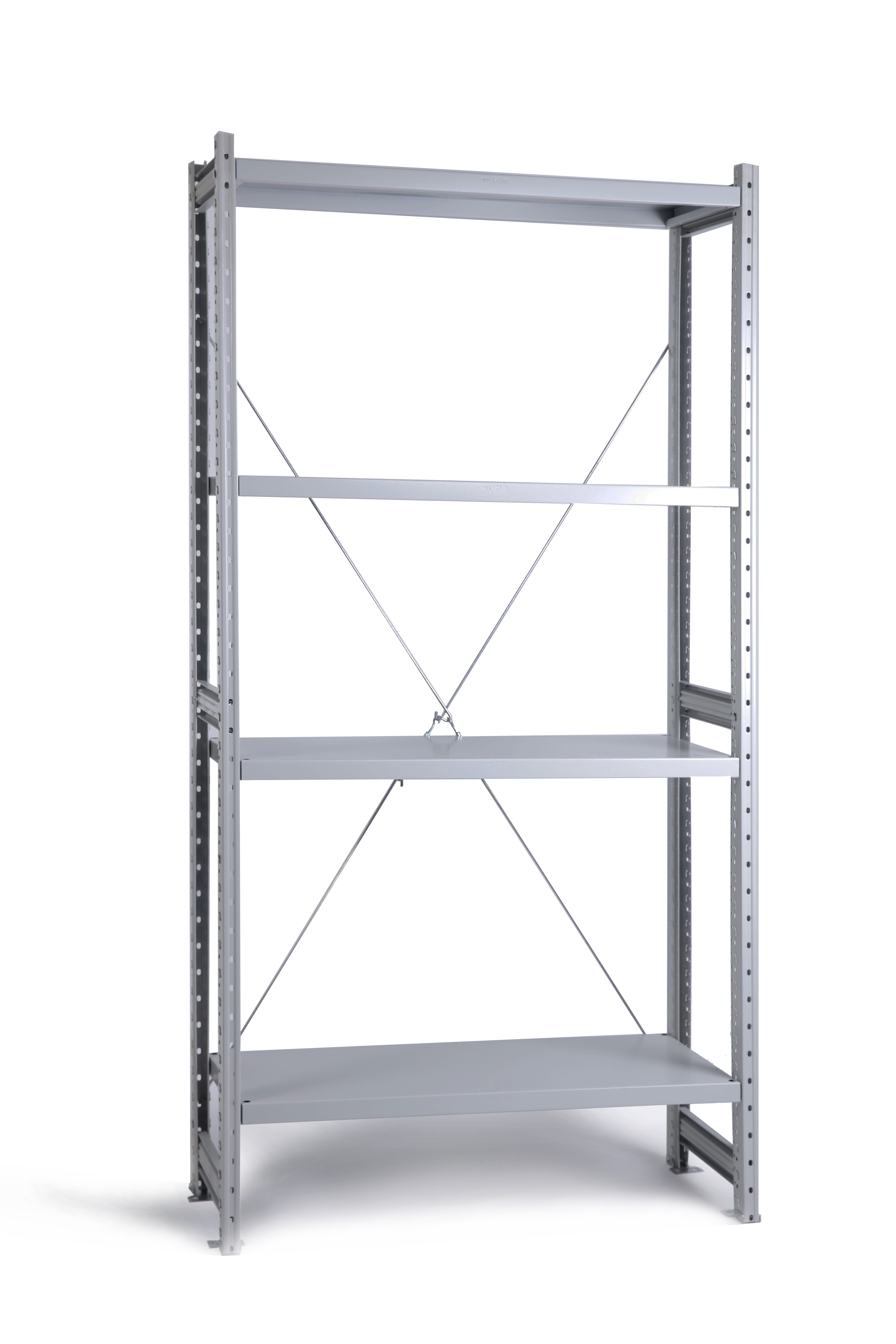 - Все элементы стеллажа окрашены полимерной (порошковой) краской RAL 7035 светло-серого цвета.
