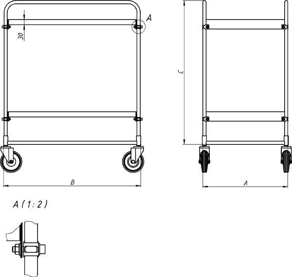 Высота тележки указана без учета высоты колес.