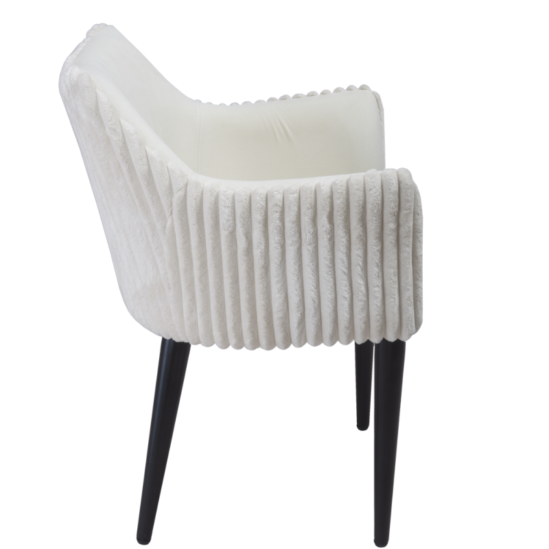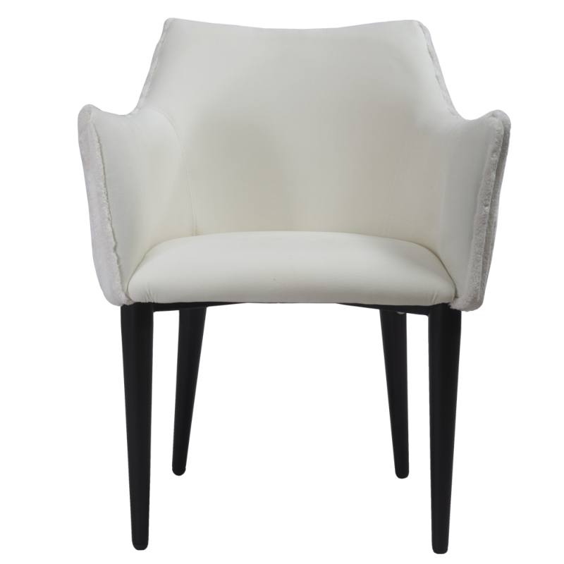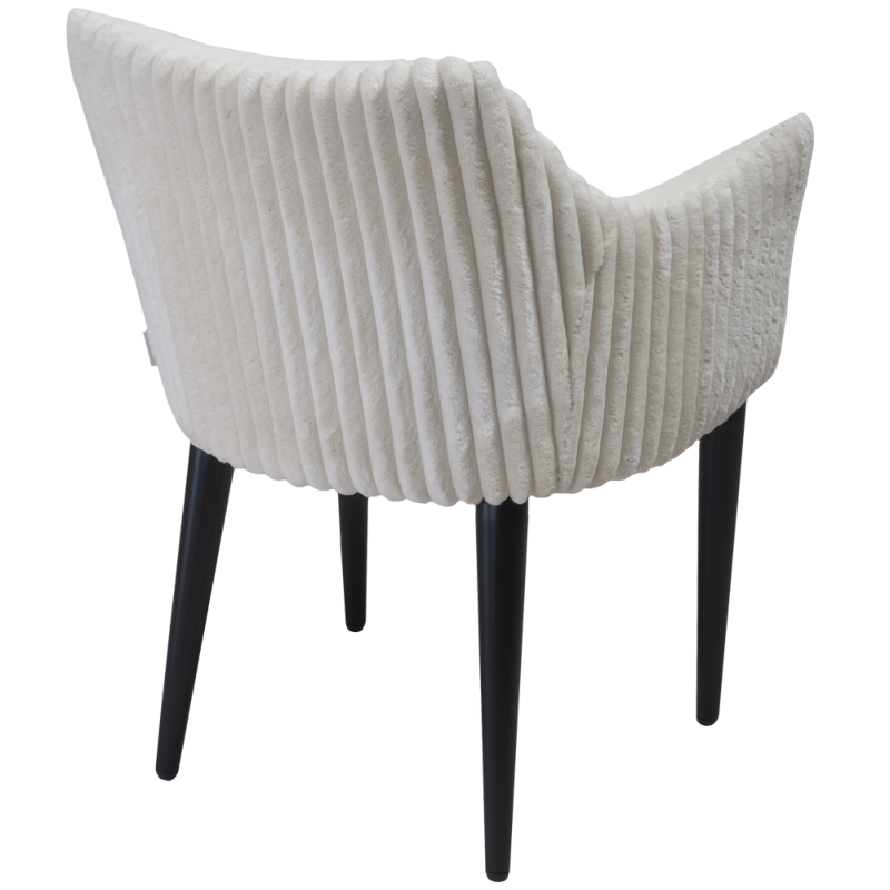 Особая эстетика модели кроется в комбинированной отделке: внешняя сторона спинки выполнена из контрастного материала, что придает креслу объем и позволяет использовать его как стильный инструмент для зонирования пространства. Завершает образ устойчивое металлическое основание с элегантными конусовидными ножками, которые сочетают в себе визуальную легкость и высокую прочность.