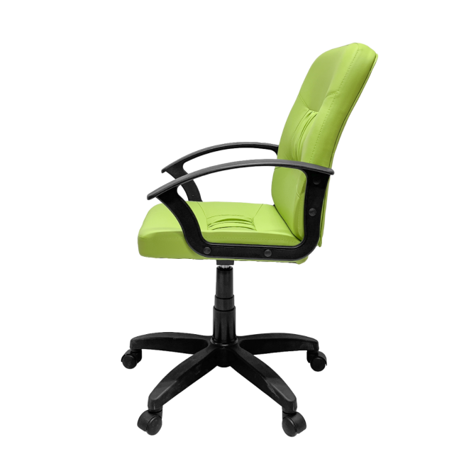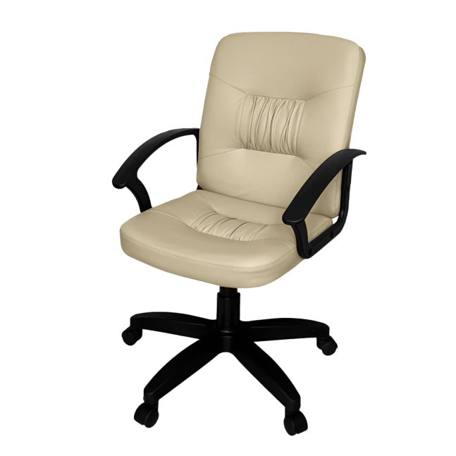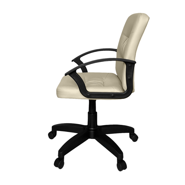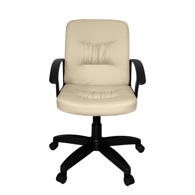 Оснащено пятилучевым пластиковым основанием с роликами и пластиковыми подлокотниками.